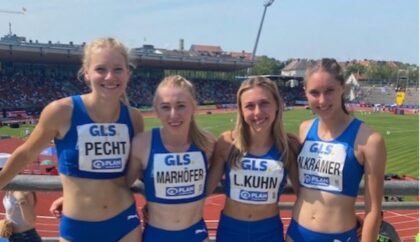 Ebenso auf Platz 18 landete die 4 x 100 m Staffel des TSV SCHOTT Mainz mit Nicole Krämer, Luise Pecht, Helen Marhöfer und Laura Kuhn mit 46,89 s